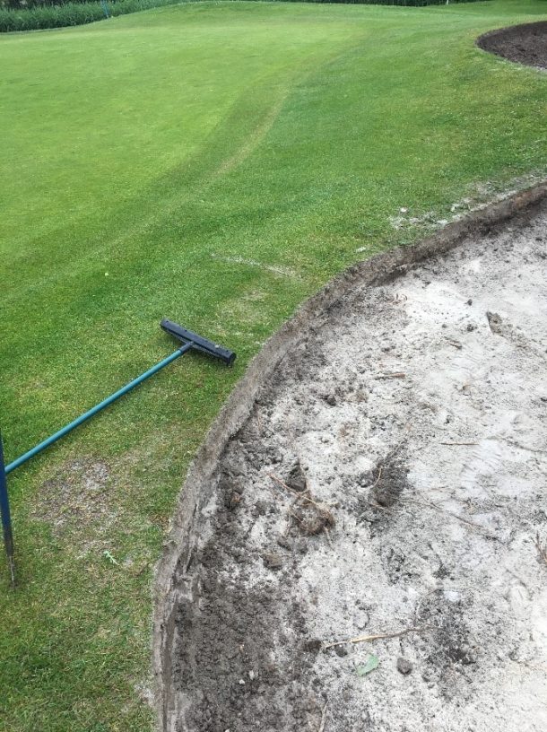 Afgelopen dagen zijn bijna alle bunkers opgeknapt. Zij zijn voorzien van zand en de randen zijn opnieuw afgestoken. De bunkerranden zijn daarom nog erg fragiel. Het duurt nog zeker 6 weken voordat een stevig wortelpakket is gevormd, dat het gewicht van een golfer kan dragen. Wij hebben daarom 3 verzoeken aan u: